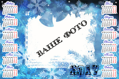 Новогодний календарь на 2017 год с рамкой для фотошопа - Под звон бокалов исполняются мечты