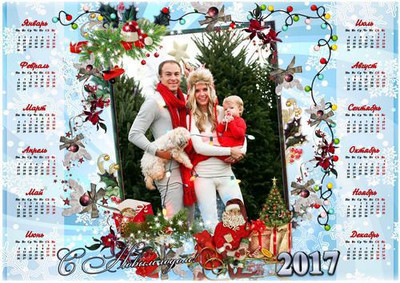 Новогодний семейный календарь с рамкой для фото - Снежная зимушка зима