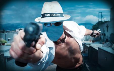 Фотошаблон для фотошопа - Парень с пистолетами на лету