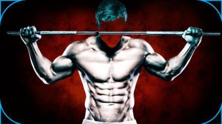 Фотошаблон мужской - Бодибилдер с грифом