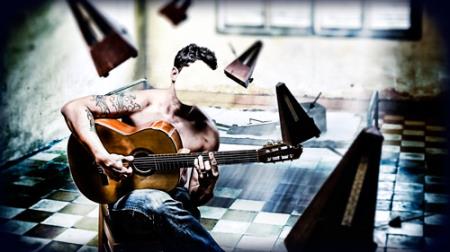 Фотошаблон для монтажа - Парень на стульчике с гитарой