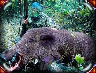 Фотошаблон для фотомонтажа - Охотник с тушей кабана
