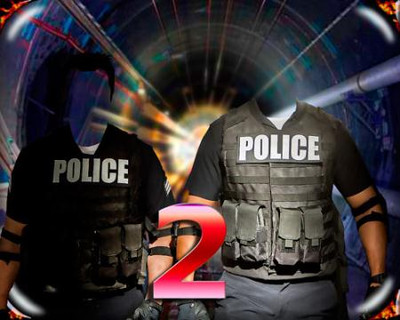 Шаблон фотошоп для фото - Двое полицейский в тонеле