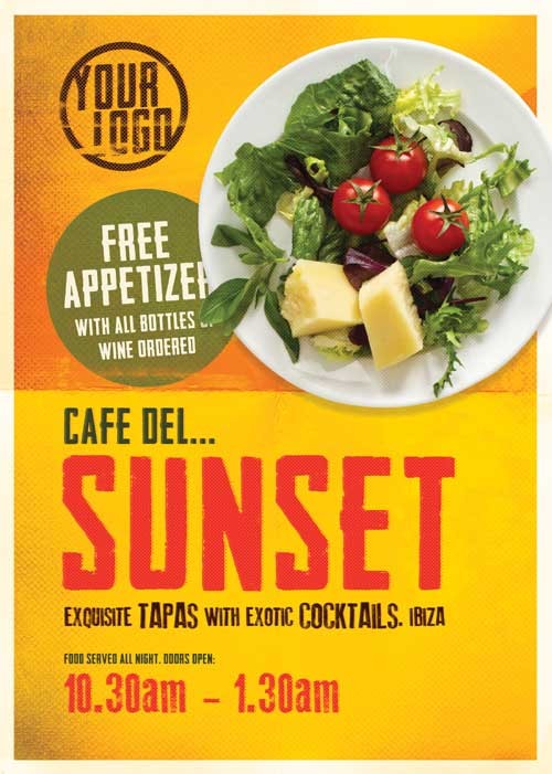 PSD исходник флаера - Кафе Sunset