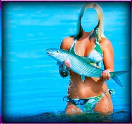 Шаблон фотошоп - Девушка с рыбиной