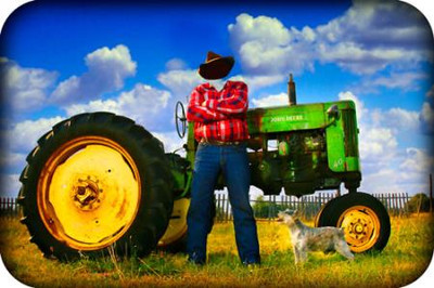 Шаблон фотошоп для фото - Тракторист возле трактора