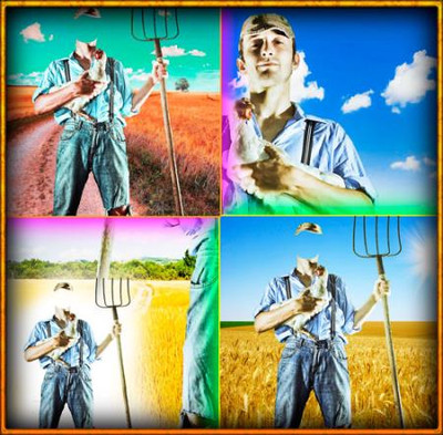 Шаблон фотошоп для монтажа - Селянин в поле с вилами