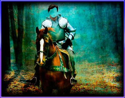 Многослойный шаблон для фото - Рыцарь на коне в лесу