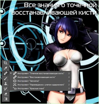 Точечная восстанавливающая кисть применяется для быстрого устранения небольших проблемных областей на изображении, таких как дефекты на коже, пыль, грязь, маленькие царапины и т.п.