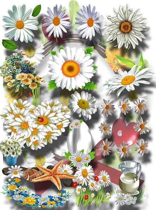 Клип-арты для фотошопа - Коллекция ромашек 183 png | 2423x1683; 3118х2221 | 300 dpi | 796 Mb |