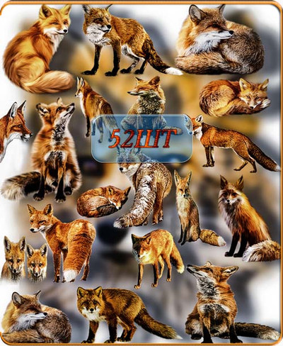 Клипарты на прозрачном фоне - Рыжая лиса 52 png | 2423x1683; 3118х2221 | 300 dpi | 319 Mb |