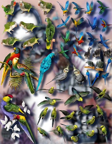 Клипарты для фотошопа - Цветные попугаи