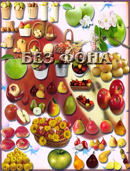 Клип-арты для фотошопа на прозрачном фоне - Яблоки и груши 1154 png | 2423x1683; 3118х2221 | 300 dpi | 891 Mb