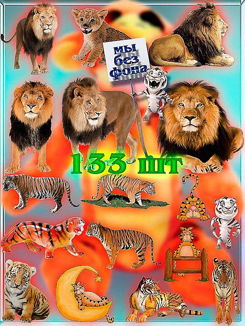 Клипарты картинки - Львы и тигры 133 png | 2423x1683; 3118х2221 | 300 dpi | 288 Mb