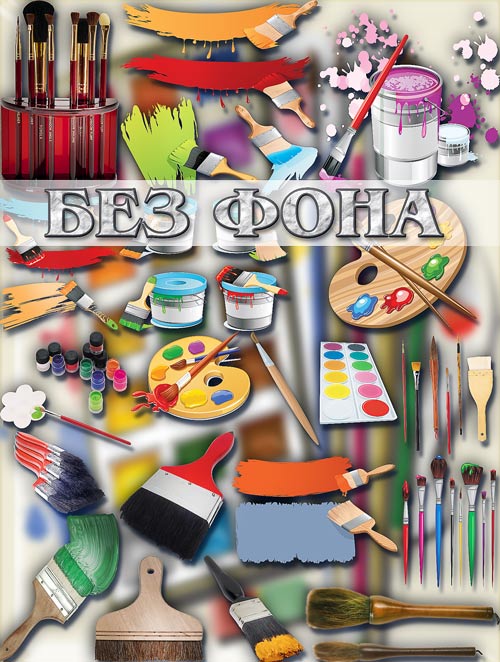 Клипарты на прозрачном фоне - Кисти и кисточки 171 png | 2423x1683; 3118х2221 | 300 dpi | 401 Mb