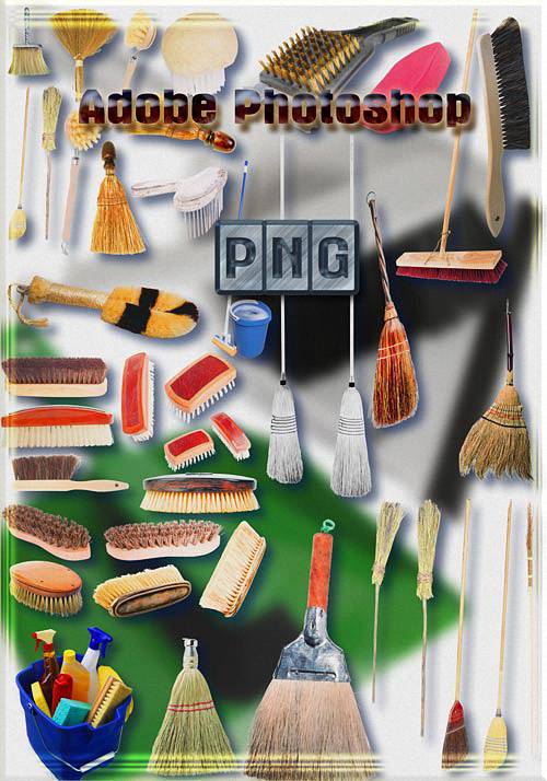 Веники и метла, щетки и щеточки, совки, лопатки и лопаты, губки без фона для фотошопа 118 png | 2423x1683; 3118х2221 | 300 dpi | 275 Mb |
