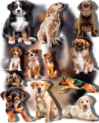 Клипарты для фотошопа на прозрачном фоне - Собаки разных пород 55 png | 2423x1683; 3118х2221 | 300 dpi | 207 Mb |