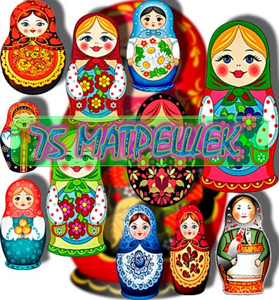 Растровые клипарты - Советские матрешки 75 png | 2423x1683; 3118х2221 | 300 dpi | 216 Mb |